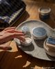 To add an element of harmony and balance, the set includes a large and a small Ground Nut platter. When placed together, they form an eye-catching offset Jing Jang-like pattern, symbolizing the interconnectedness of opposites.
