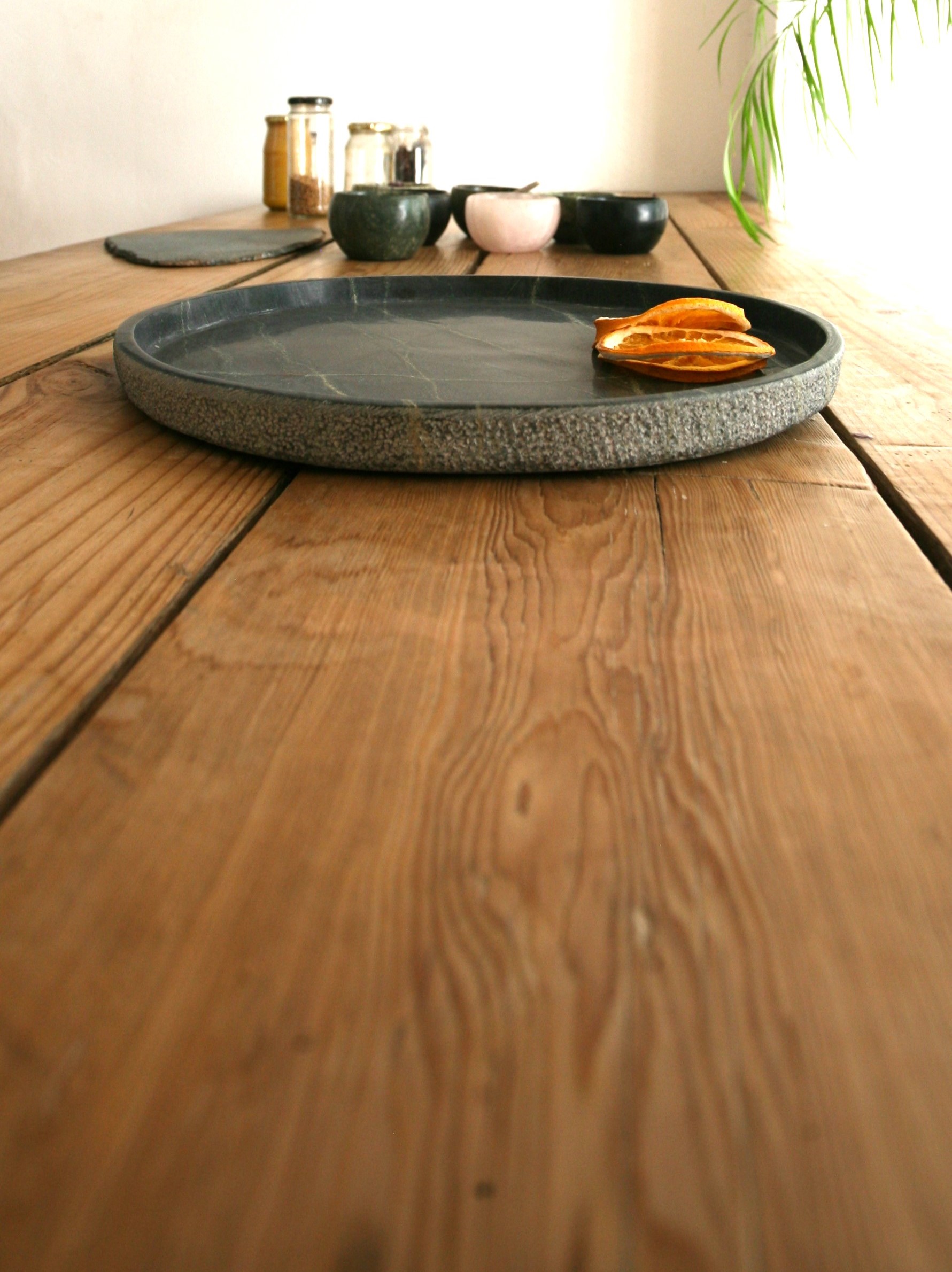 Perfect for serving side dishes in our Small Stone Pots or as a Cheese platter. With a live-edge on each dish, they exude a masculine attraction that is sure to impress your guests. Add a touch of Zimbabwean artistry to your table with our stone trays